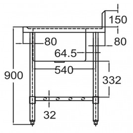 Legs are 4 x 41mm diametre 304 grade stainless steel, fitted with stainless steel disk feet.