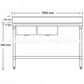 The stainless steel sink bench comprises of 304 grade stainless steel benchtop/drainer 1.2mm thick with a 3mm thick steel reinforced zincalume coated backing plate to work top. The construction provides a quality sink bench that has exceptional overall sturdiness, rigidity and strength for use within a large large range of commercial, industrial, hospitality and other industry applications.