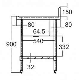 The stainless steel sink bench has a wet edge keeping water in the sink and not on the floor and the bowl is large at a size of 450 W x 450 D x 300 H making cleaning and washing up easier.