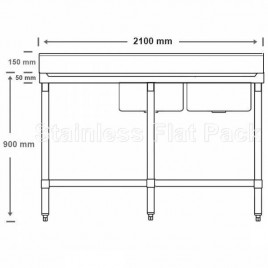 The stainless steel sink bench comprises of 304 grade stainless steel benchtop/drainer 1.2mm thick with a 3mm thick steel reinforced zincalume coated backing plate to work top. The construction provides a quality sink bench that has exceptional overall sturdiness, rigidity and strength for use within a large large range of commercial, industrial, hospitality and other industry applications.