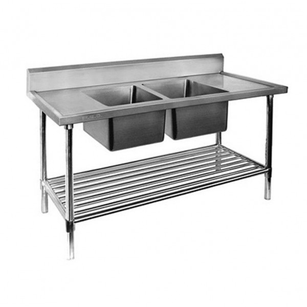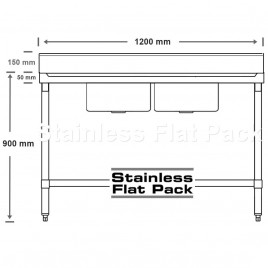 Full 304 Grade Stainless Steel Double Bowl Sink Bench, Legs and Undershelf.