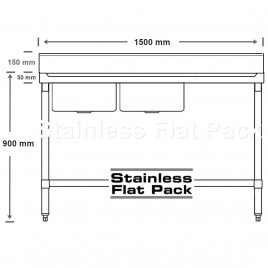 Full 304 Grade Stainless Steel Double Bowl Sink Bench, Legs and Undershelf.