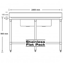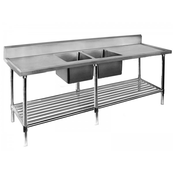 Full 304 Grade Stainless Steel Double Bowl Sink Bench, Legs and Undershelf.