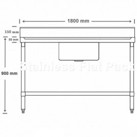 The stainless steel sink bench comprises of 304 grade stainless steel benchtop/drainer 1.2mm thick with a 3mm thick steel reinforced zincalume coated backing plate to work top. The construction provides a quality sink bench that has exceptional overall sturdiness, rigidity and strength for use within a large large range of commercial, industrial, hospitality and other industry applications.