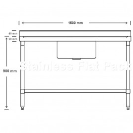 Stainless steel sink bench supplied with stand, undershelf and 90 mm plug and waste unit.